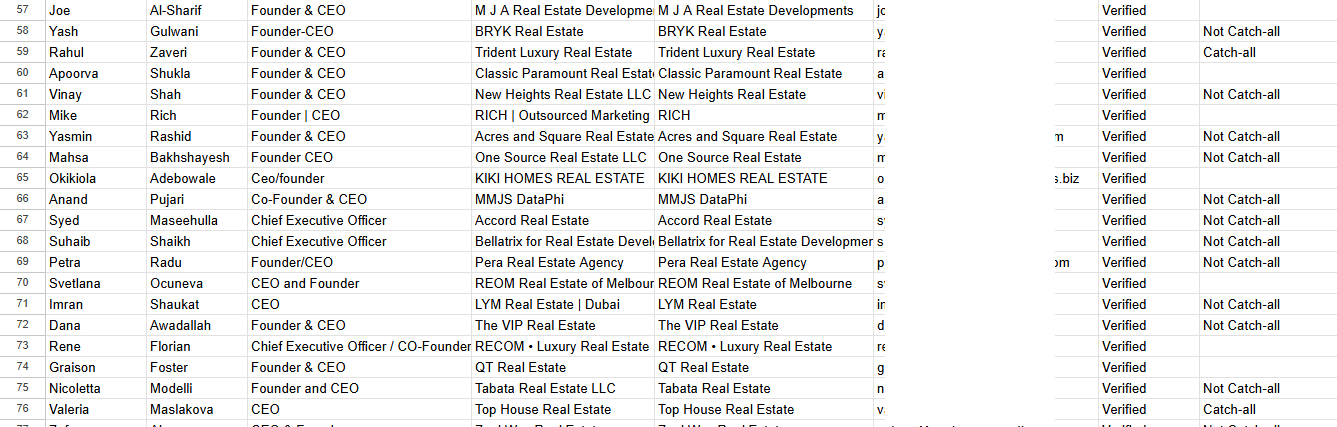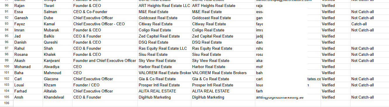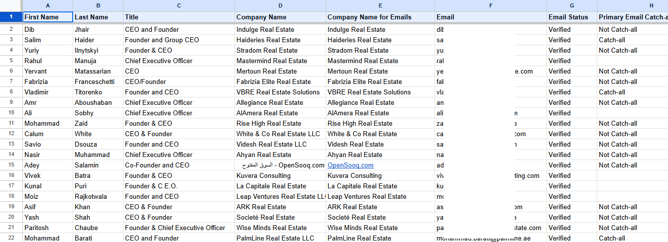 A focused list of C-suite decision makers in the UAE real estate sector.Collected via Apollo.Manually filtered.
